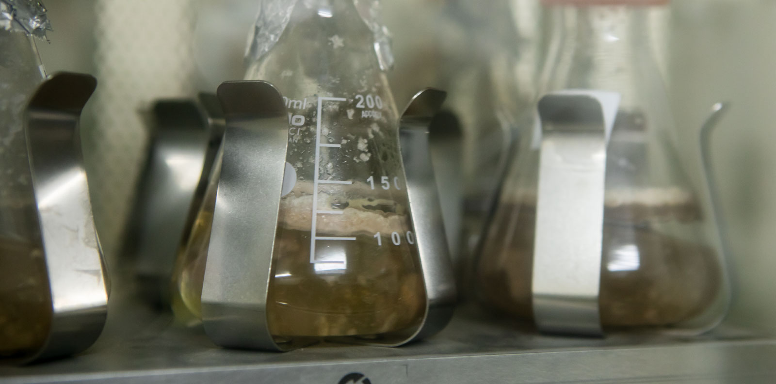 プラスチックとバイオ材料では物性が異なるため混ざりにくいのですが、微生物を使って加工することで均一な混合を目指しています。