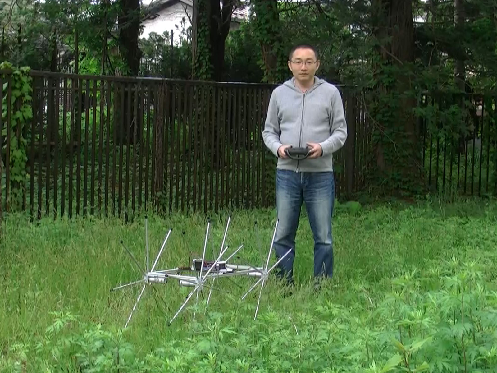 二つ目は、「草むらの中で虫を見つけ、その動きを観察する移動ロボットの開発」です。草むらの中で、ロボットの移動機構として普通の車輪を使うと、二つの問題が生じます。一つは、ロボットの車輪が草に絡まって動けなくなってしまう可能性があることです。もう一つは、草むらに轍を作ってしまい、虫が棲む環境を破壊してしまうことです。そこで、タイヤとリム(外周輪)が無く、スポークだけからなる車輪を採用することにしました。スポークが草花を跨ぐような動きをするので、前述の二つの問題を回避できます。このロボットはまだ試作中ですが、これまでの研究で培ったロボット技術や情報技術を活用しながら、鋭意取り組んでいるところです。