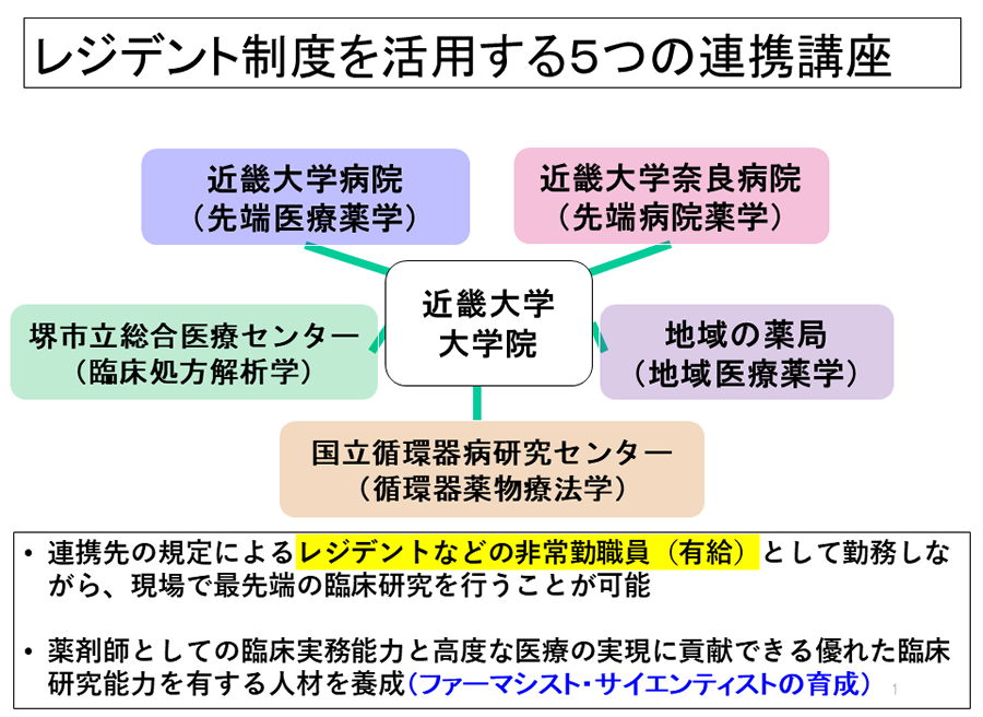 これらの講座は、連携先の規程によるレジデントなどの非常勤職員(有給)として実際に勤務しながら、現場で最先端の臨床研究を行うことが可能です。