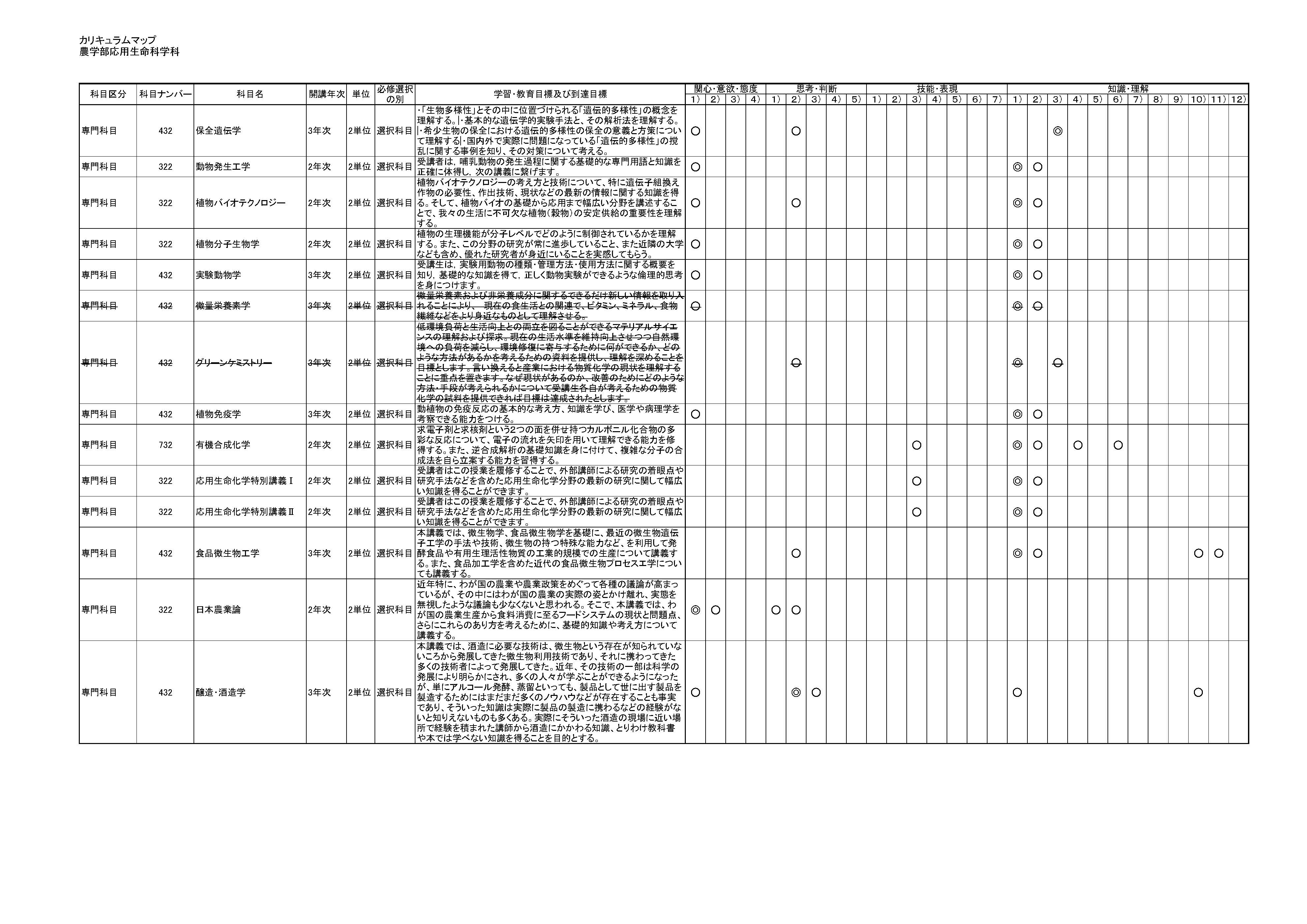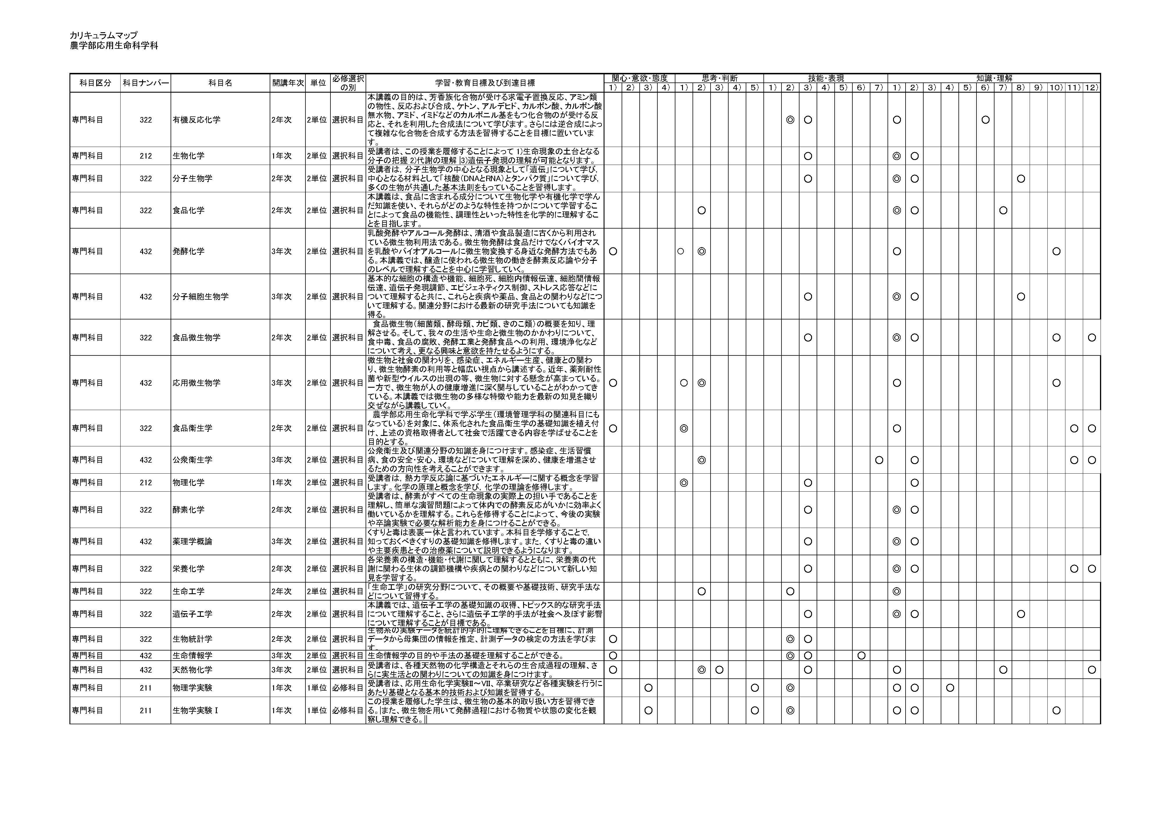 令和2年度入学生用 カリキュラムマップ
