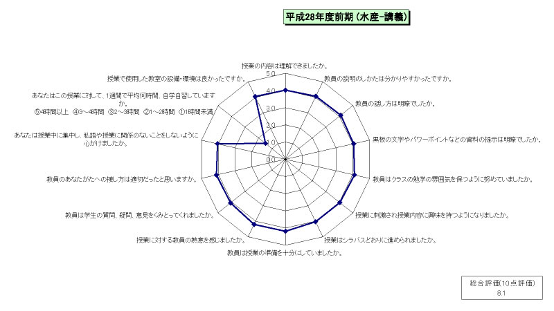 授業アンケートの結果(学部平均、学科別平均)をお知らせします。