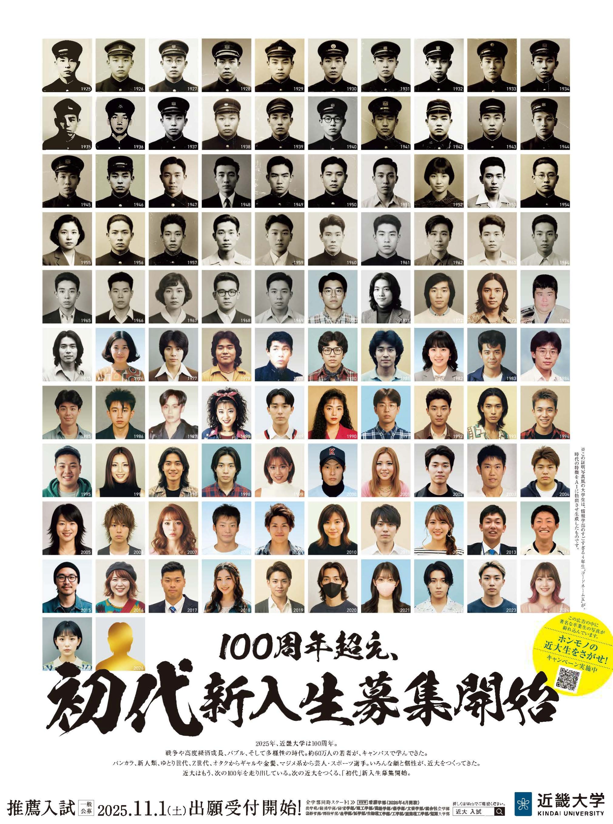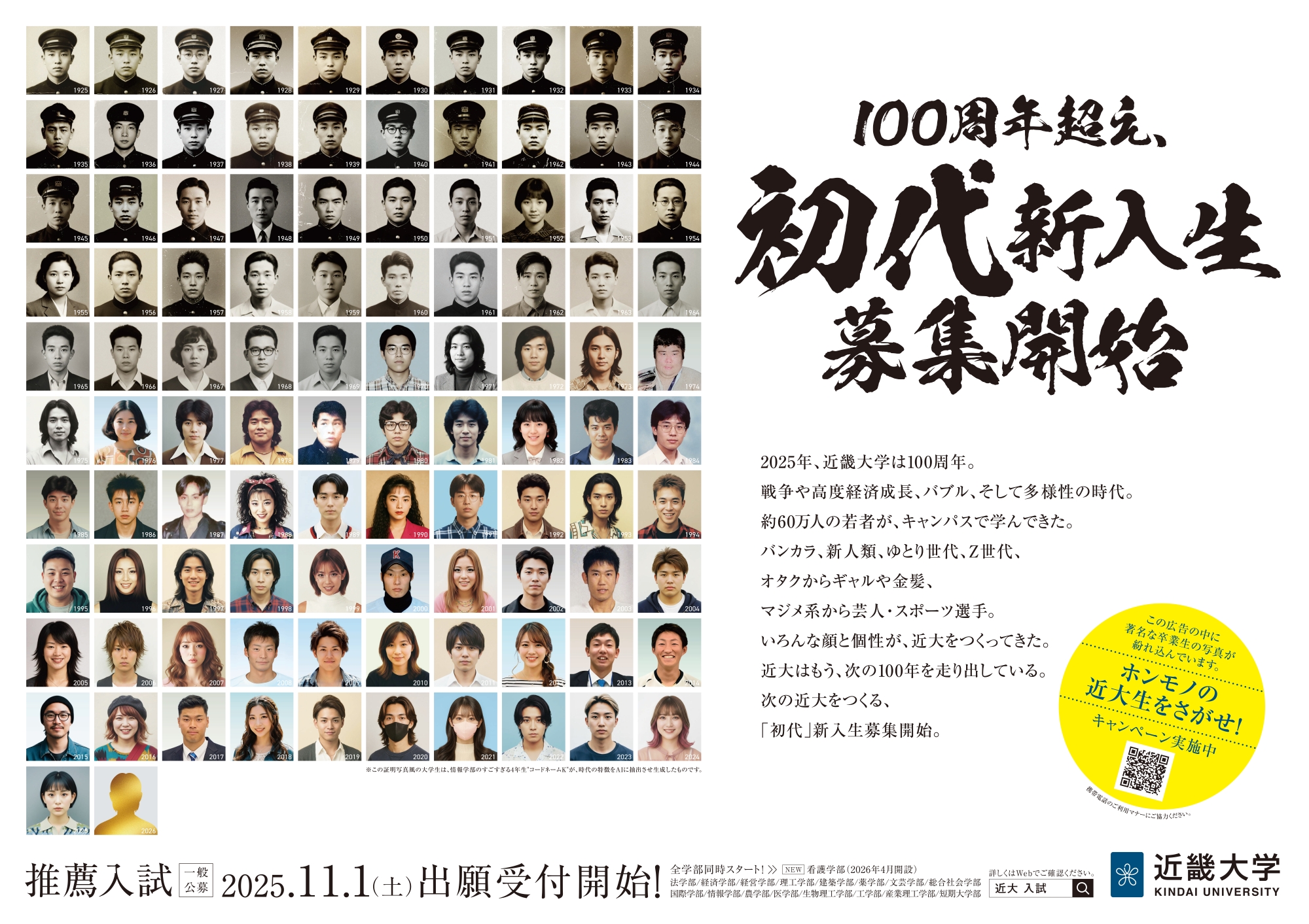 2025年度 100周年超え、初代新入生募集開始 掲載月 2025年11月 媒体 交通広告 拡大PDF 100周年超え、初代新入生募集開始 掲載月 2025年11月 媒体 新聞広告 拡大PDF 近大病院24時。 掲載月 2025年10月 媒体 新聞広告 拡大PDF 近大看護、参上。 掲載月 2025年7月 媒体 新聞広告 拡大PDF