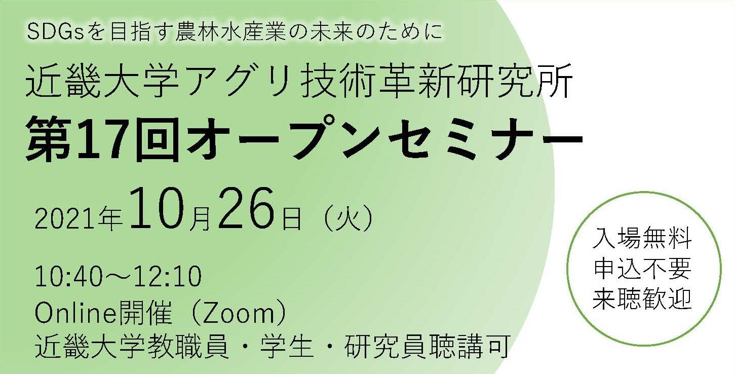 近畿大学アグリ技術革新研究所の第17回オープンセミナーを2021年10月26日(火)に開催いたします。
