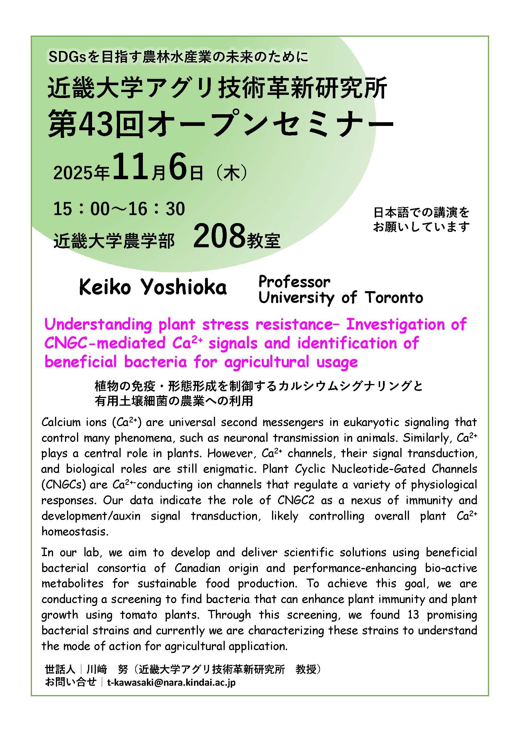 | 案内ポスター(PDF) | 近畿大学アグリ技術革新研究所第43回オープンセミナー | |
