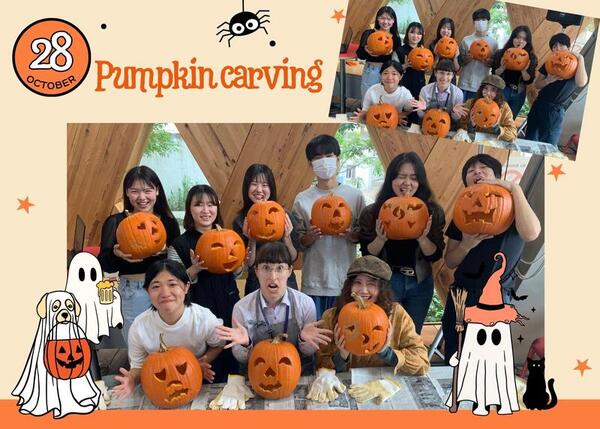 たくさんのハロウィングッズでデコレーションしてみなさんをお出迎え。パーティー前の10月28日(月)に実施したパンプキンカービング体験で参加者が作成してくれたジャック・オー・ランタンも華を添えます!開場するとユニークな仮装をした参加者たちも続々と集まり、村長の挨拶にていざスタート!コスチュームコンテストや、チーム対抗トリビアクイズ、バケツリレーゲームにバースディセレブレーションと盛りだくさんなプログラムであっという間の時間でした。今年もハロウィンの雰囲気をたっぷり味わっていただけたでしょうか?お越しいただいた皆さん、そしてボランティアスタッフの皆さん、本当にありがとうございました。今回参加できなかった皆さんもまた来年お待ちしております!