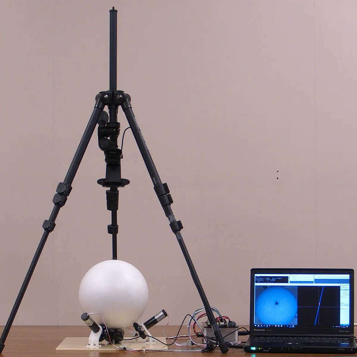さらにプラスアルファとして、高速カメラと高速画像処理の導入も行いました。これにより刺激装置とコオロギの相対的な位置・姿勢をより詳細に取得することが可能になり、ロボット(球形トレッドミル装置)を滑らかに動かすことができるようになりました。コオロギが乗るロボットがガタガタと動いてしまっては、それがまた別の刺激となり、コオロギの動きが不自然になってしまう可能性があります。高速カメラと高速画像処理の導入によりロボットが滑らかに動くことによって、コオロギに不要な刺激を与えずに、我々が観察したい自然なコオロギの動きが観察できるようになります。