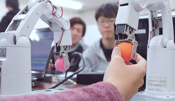 手の形や肌の色など、カメラが捉えた映像をロボットにどのように認識させ、どんな反応をさせるか、画像処理工学などを応用した技術と知識を学びます。