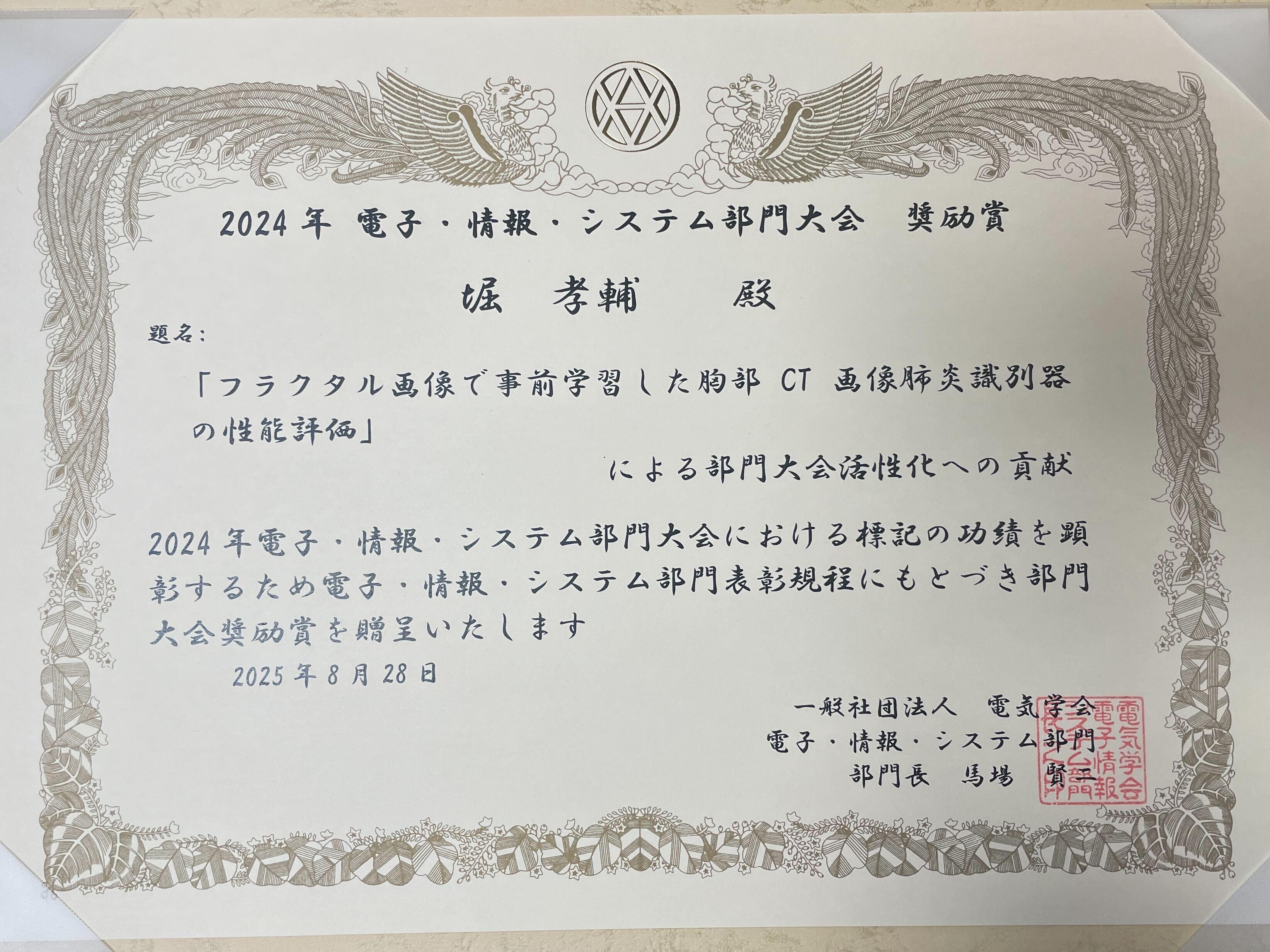 2024年 電気学会 電子・情報・システム部門大会で情報学部教員と指導学生が受賞
