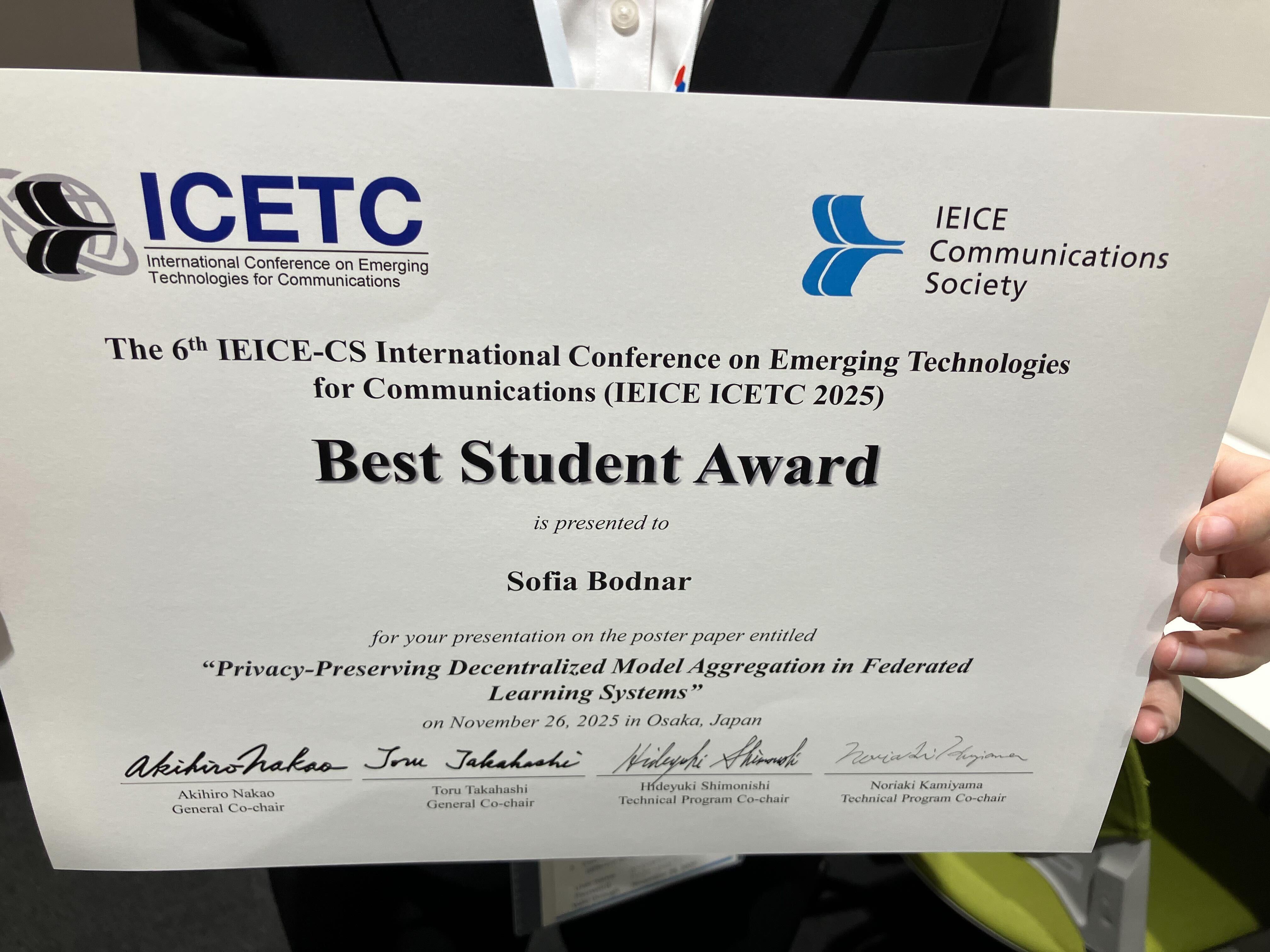 2025年11月26日~28日にかけて実施された国際会議 IEICE-CS International Conference on Emerging Technologies for Communications 2025 (ICETC 2025)で情報学部教員の指導学生がBest Student Awardを受賞しました。