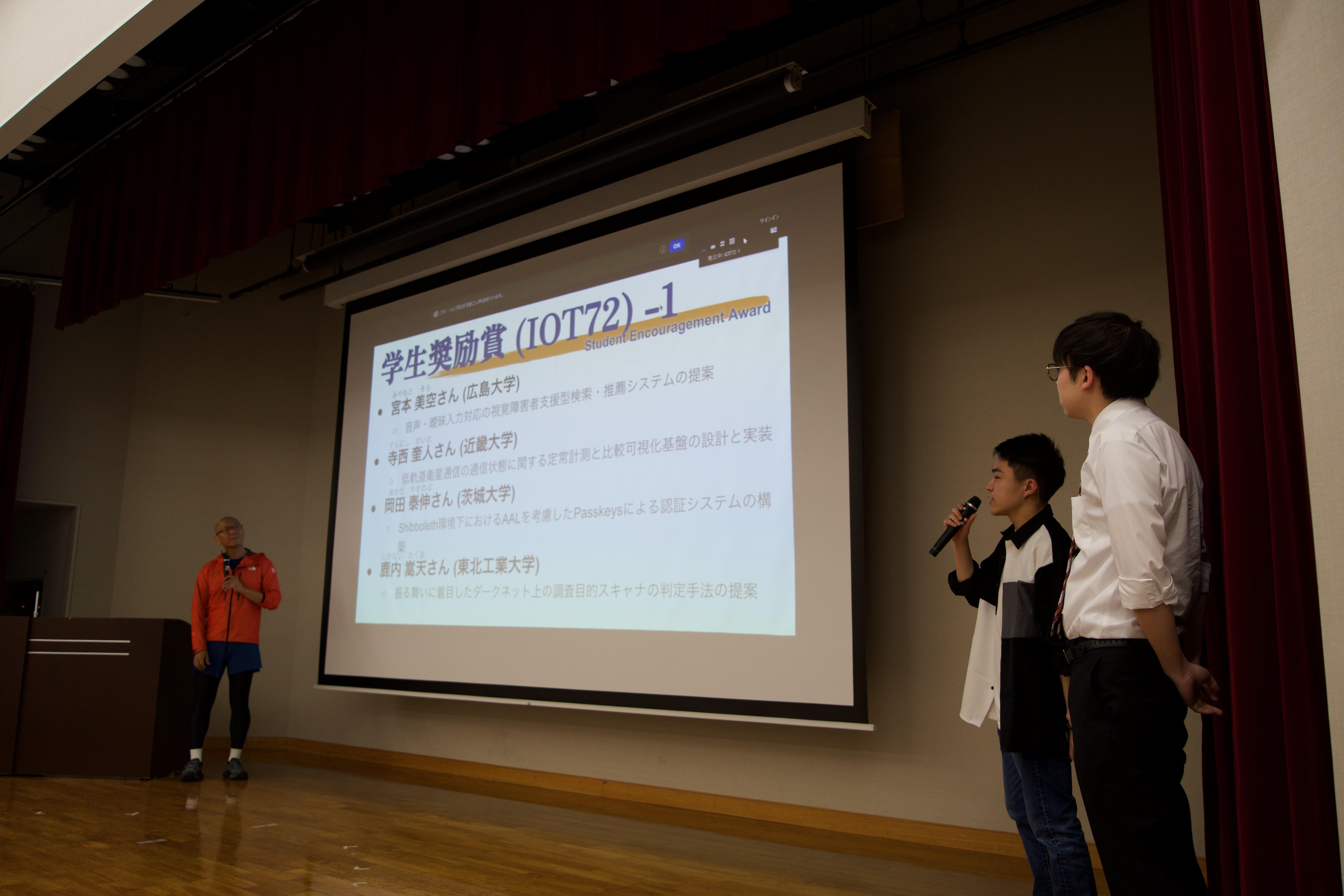 第72回IOT研究会で情報学部教員の指導学生が学生奨励賞を受賞
