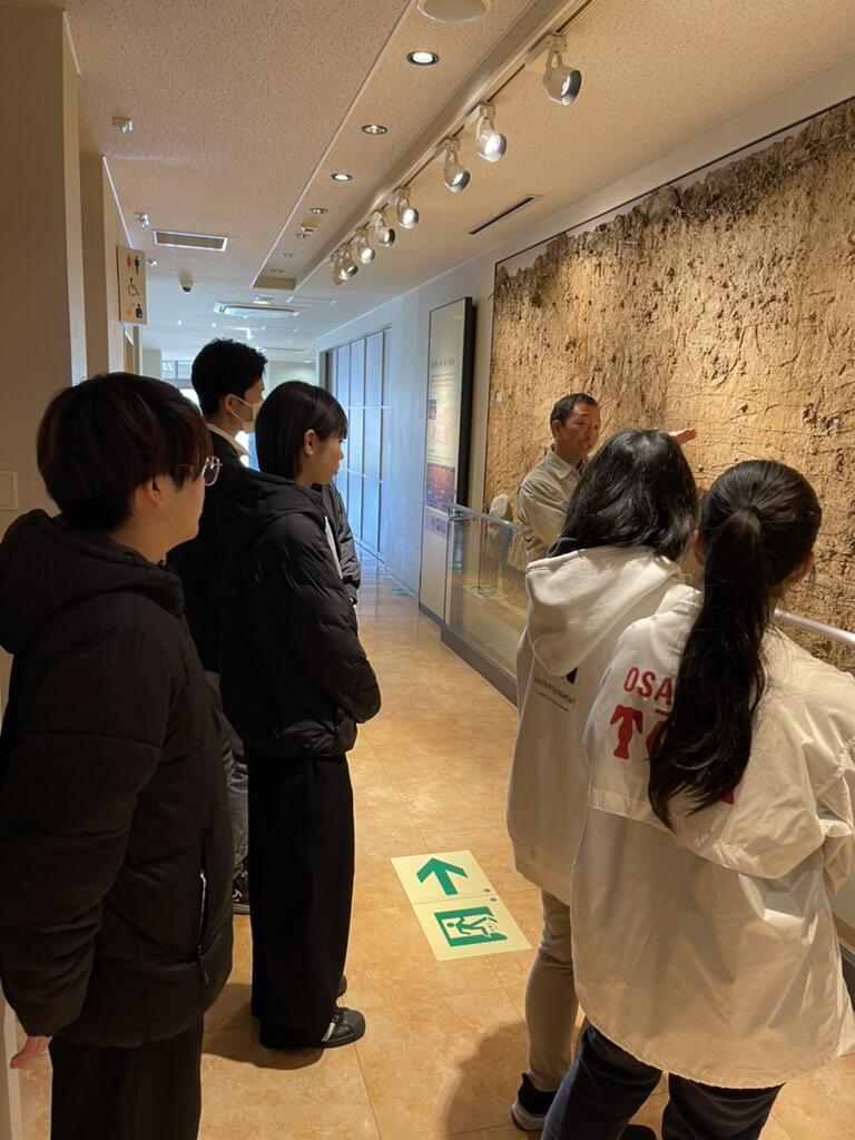 本企画は橿原市魅力創造部文化財保存活用課課長補佐 松井一晃氏の協力のもと、「歴史に憩う橿原市博物館」の展示と、隣接する新沢千塚古墳群を多様な角度から観察することで、歴史に触れることを目的とするものです。法学部からは二年生の東條友愛さん、一年生の西井乙寧さん、井山統芯さん、谷口智哉さんが参加しました。その他、関西大学と二松学舎大学からの参加者がありました。