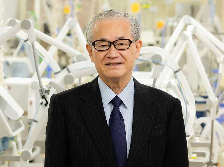 心臓手術の低侵襲化にはいくつかの考え方があります。一つは心臓手術に人工心肺法を用いないこと。主任教授として着任して近畿大学で初めて人工心肺を用いない心拍動下の冠動脈手術(Off Pump CABG)を実用化させました。もう一つの低侵襲化は皮膚を小さく切開し、そこから心臓手術を行うという低侵襲手術。その先端がロボットによるよる心臓手術です。小切開手術の新しい技術開発に努め、発信しました。また、道のりは長かったですが、ロボット心臓手術の実施医の養成、実施施設の認定獲得などの高い壁を克服しました、もう一つの低侵襲法はカテーテルを用いた心臓大血管治療、カテーテルと従来の心臓大血管手術を組み合わせたハイブリッド治療の発展です。この領域も実施医の養成、実施施設の認定獲得、病院のハイブリット設備の新設などの大きな課題がありましたが、それら克服して実用化の軌道に乗せることができました。近畿大学はこれらのいろいろな低侵襲心臓大血管手術の先進施設となっています。私の主任教授時代はこれらの考え方が生まれ、急速に発展する時期と重なっていますが、新しい課題に絶えず先進的に取り組んでこれたと思っています。 -