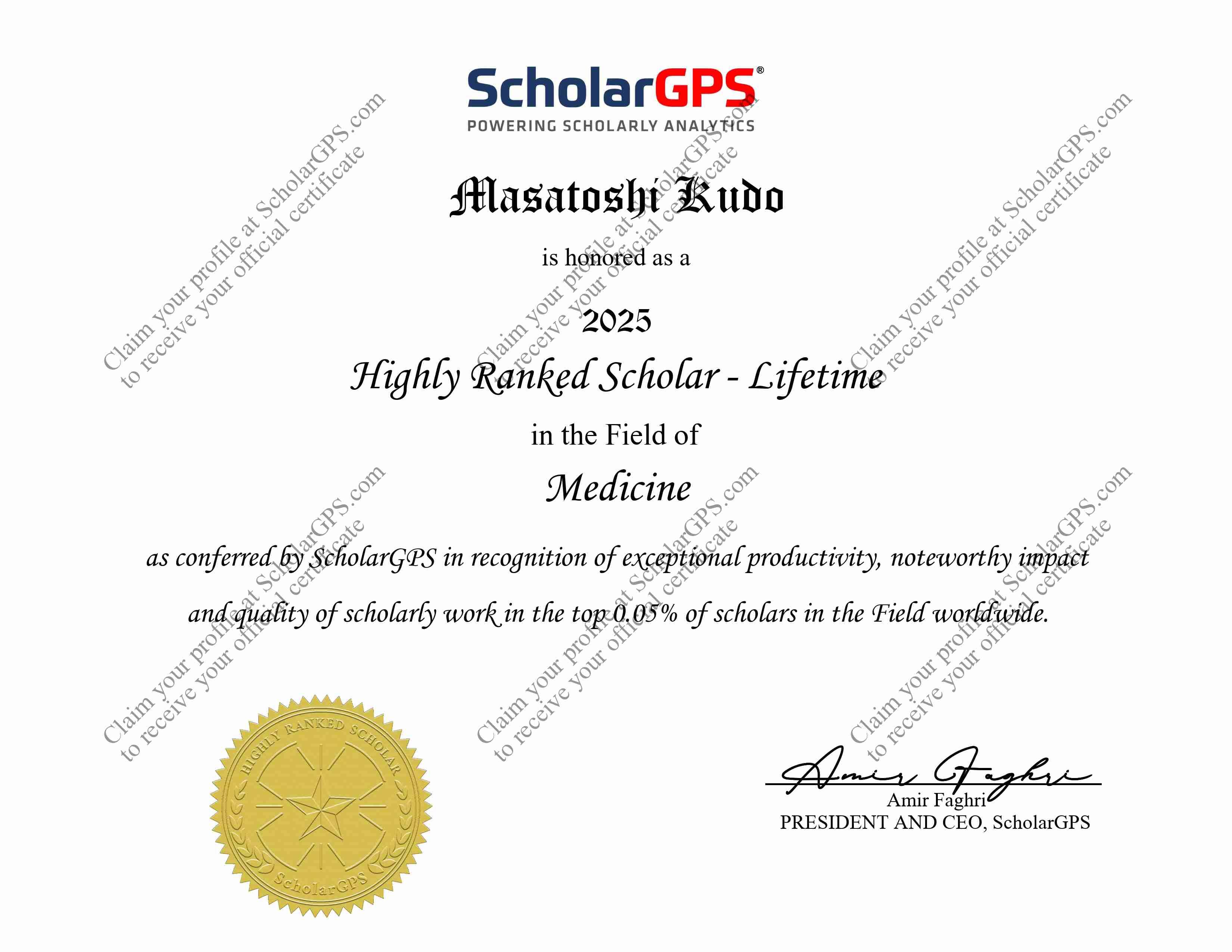 ScholarGPSによるランキングにおいて、工藤正俊主任教授が「2025 Highly Ranked Scholar」として選出されました!