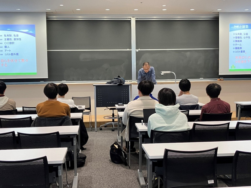 2024年11月27日~29日に行われた社会連携推進センターのSDG’s WEEK in KINDAI2024にて河井克之教授が講演を行いました.講演タイトルは「防災・環境問題への地盤工学の取り組み」で,持続可能な社会実現のために社会環境工学科が果たしている役割について,また地盤工学の最新の研究成果などの説明がありました.社会環境工学科以外の学生の聴講もあり,特に防災意識の啓発につながったのではないかと考えます.