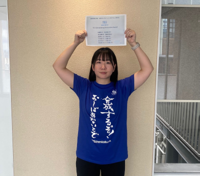 応用元素化学研究室(指導教員 : 松尾司 教授、太田圭 助教)所属の応用化学科 B4 今井瑞紀さんが、2024年11月13日に開催された基礎有機化学会若手オンラインシンポジウム(第4回)にて、学生で優れた質問をしたことに対して、優秀ディスカッション賞 (TCI Outstanding Discussion Award) を受賞しました。副賞として、東京化成工業のTシャツが授与されました。