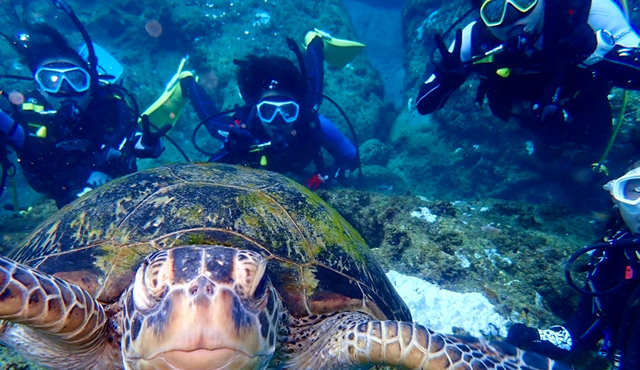 8月上旬に森ノ宮のダイビングプールでスクーバ訓練を3日間行い、立ち泳ぎの練習やCカード講習で習ったことを再確認したりします。8月下旬から9月上旬にかけて約二週間徳之島で夏合宿を行います。