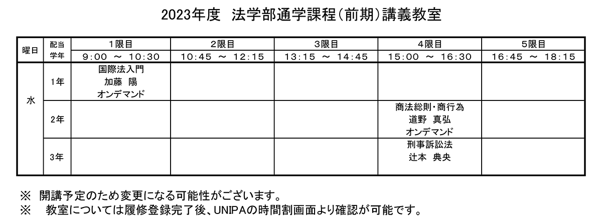 - 通学部の時間割調整により、休講・補講・試験の日程については、通学部に合わせて実施するため曜日・講師等が変更される場合があります。あらかじめご了承ください。